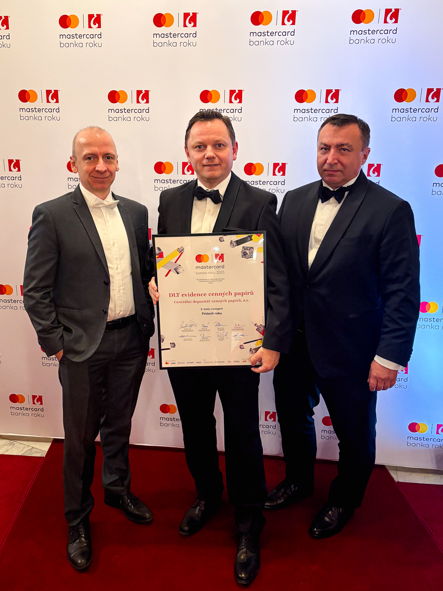 Centrální depozitář cenných papírů (CDCP) si z letošního ročníku soutěže Mastercard Banka roku 2025 odnáší další významný úspěch. V kategorii Fintech roku obsadil druhé místo za svůj inovativní projekt DLT evidence, který představuje jeden z nejpokročilejších kroků v digitalizaci infrastrukturních služeb na českém kapitálovém trhu.